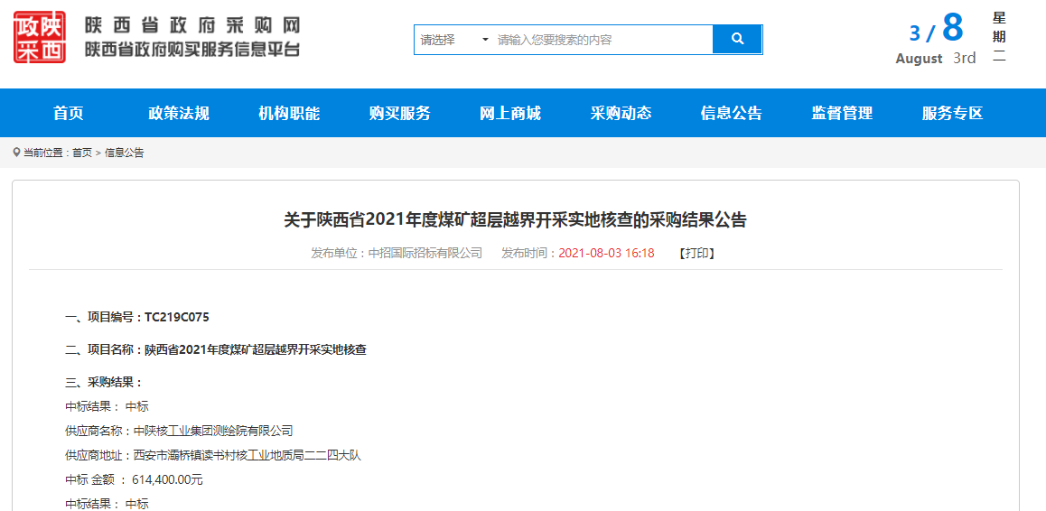 • 2024-05-30喜訊!公司成功中標(biāo) “陜西省2024年度煤礦超層越界開(kāi)采實(shí)地核查采購(gòu)項(xiàng)目”合同包2